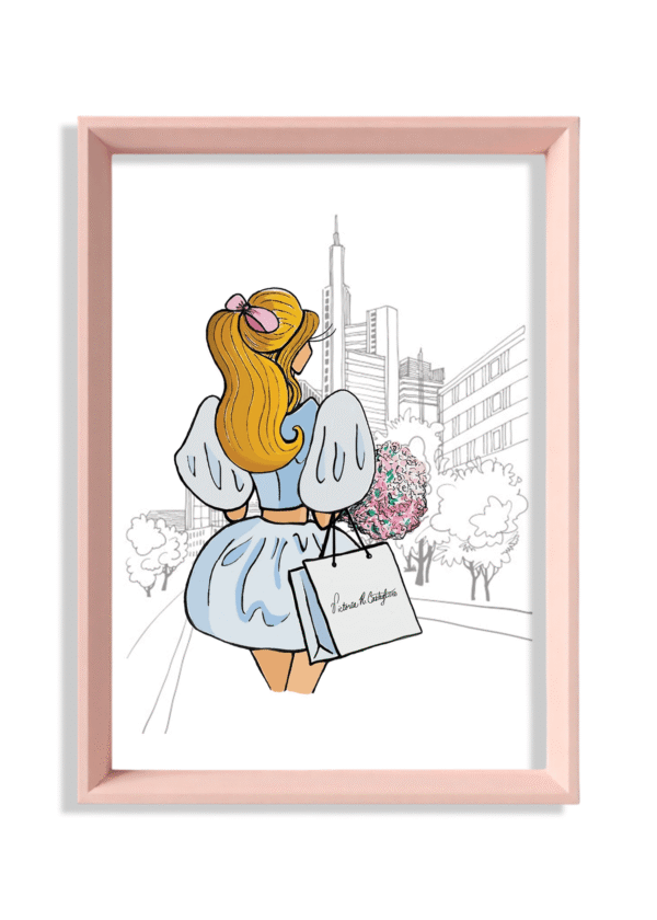 This is my illustration of a girl holding a bouquet of vibrant flowers. This artwork captures the delicate details of the blooms. Perfect for adding a touch of elegance to any space!